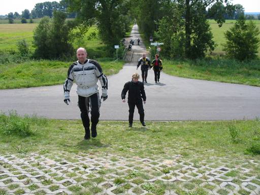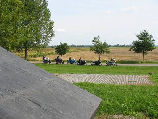 Gestärkt ging es mit vier Moppeds weiter. Kati musste leider schon nach Hause und auch Hartmut nahm mit seiner Frau einen anderen Weg. Wir nahmen zügig die vielen kleinen Straßen bis zum Ausgang des Bruches und erreichten das Fort Gorgast, wo wir erneut eine kurze Pause einlegten. |
