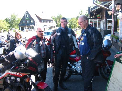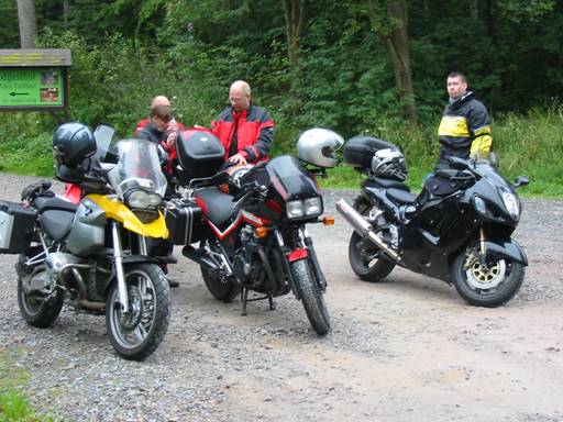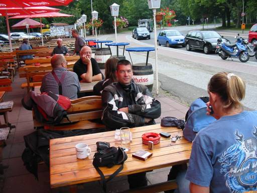 Wie geplant kreuzten wir noch einmal den Harz. In Torfhaus pflegten wir auch das Ritual und verdrückten einen Windbeutel, bevor wir uns hier in fast alle Himmelsrichtungen auflösten. Aus dem Westen waren wir gekommen, Angelika und Jörg zog es nach Norden, während Martina und Arno noch einen Familienbesuch im Süden abhalten wollten und Jens, Raimund und ich nach Hause gen Osten fuhren. |