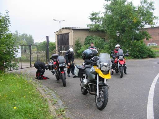 Nachdem wir unsere Fahrt fortgesetzt hatten, zog sich der Himmel doch zu und es begann leise zu tröpfeln. Kurz vor Quedlinburg hielten wir deshalb kurz an, damit sich jeder anpellen konnte. |