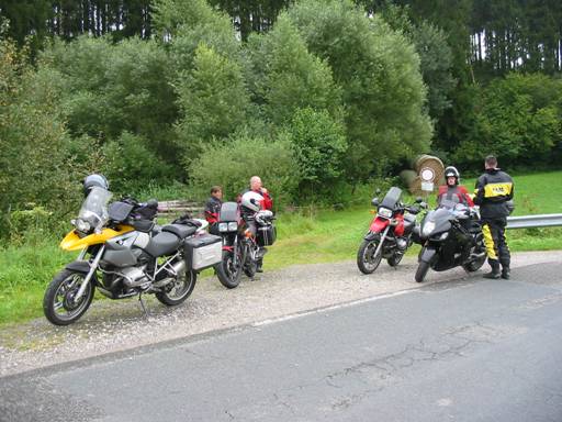 Gestärkt machten wir uns dann auf zur Tour. Dank des Navis konnten wir uns trotz der fremden Gegend zügig über die kleinsten Nebenstraßen bewegen. Daß unsere Pfade unter den Bikern nicht sehr bekannt zu sein schienen, bemerkten wir nach dem Tankstopp nahe der Tonenburg. Auf den folgenden 50 km begegneten wir nicht einem einzigen anderen Motorrad und auch Autos bekamen wir kaum zu Gesicht. Also konnte wir Kurven, Serpentinen und die vielen Waldstraßen in Ruhe genießen. |