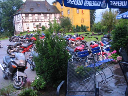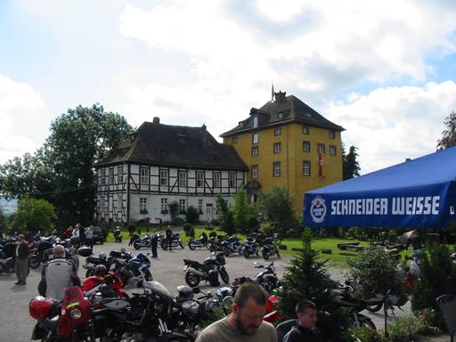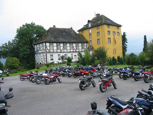 und durften an den Bahnübergängen noch die alten Dampfloks der Brockenbahn bewundern, bevor wir uns aufmachten, die ganze Strecke bis Elbingerode zurück zu fahren. Wir setzten dann den direkten Weg fort und folgten der B27 und B247 bis Northeim, wo wir kurz darauf hinter Lauenberg auf eine schöne Strecke quer durch den Solling gerieten. Kurz danach durchfuhren wir Holzminden und erreichten dann unser Ziel, die Tonenburg, wo uns Angelika und Jörg schon erwarteten. |