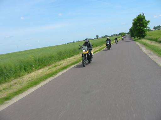 Schließlich verließen wir die Stadt im Süden und konnten dort entlang der Alten Elbe und deren grüne Auenlandschaft ein paar herrliche Kurven unter die Pneus nehmen. |