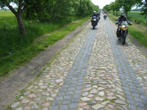 Über Plötzky und Dornburg ging es wieder gen Osten und über das Jerichower Land wieder nach Brandenburg hinein. Hier erwarteten und die typischen Straßenverhältnisse. Plattenwege |