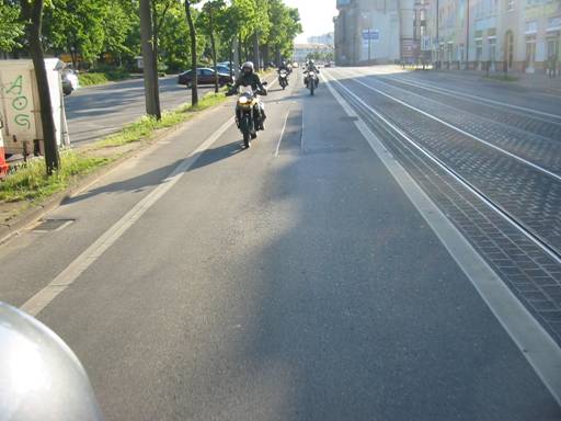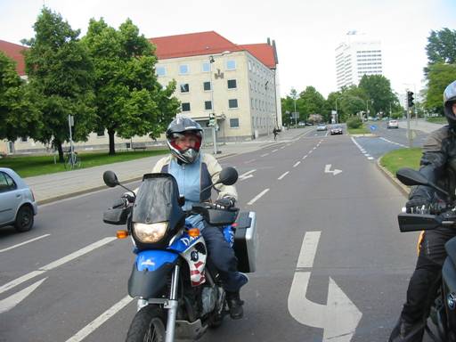 rüstete uns für die Schlussetappe, die uns zunächst quer durch Magdeburg führte. Wir hatten Mühe, mit den vielen Straßenbahnschienen zurechtzukommen. |