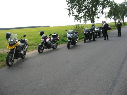 Nach Kaffee und Brötchen ging es dann los. Zunächst kämpften wir uns über die Glienicker Brücke durch den Berliner- und Potsdamer Sonntagsverkehr, der auch auf der schönen Strecke entlang des Templiner- und des Schwielowsees nicht nachlassen wollte. Erst als wir im Mühlengrund nach Norden abgebogen waren und tiefer ins Werder'sche Land einfuhren wurde es langsam freier und dementsprechend konnten wir das Tempo erhöhen.