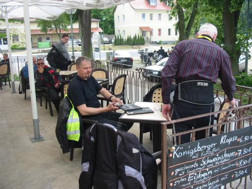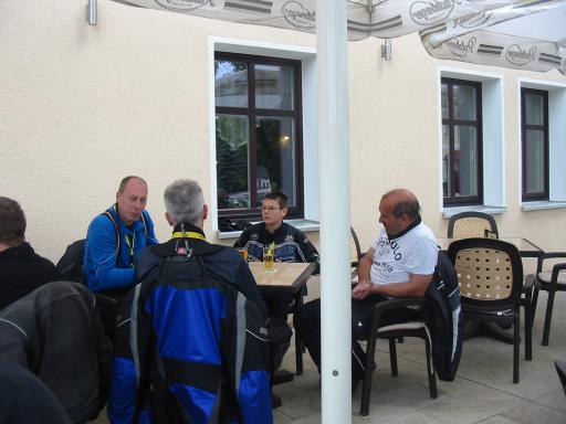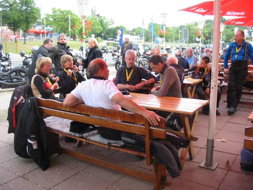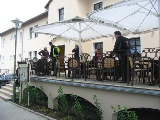 Es dauerte auch nicht lang und wir wurden im Spitzkrug fündig. Die Terrasse war frei und so fand unsere große Gruppe ausreichend Platz. |