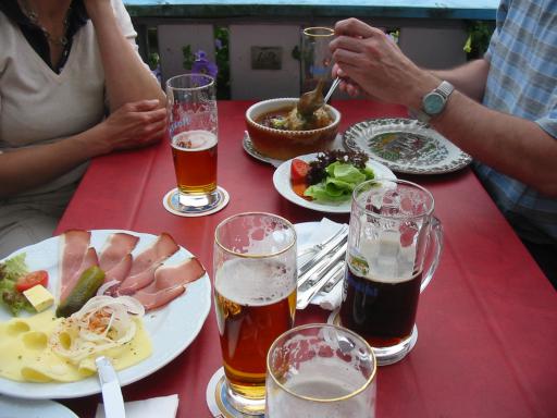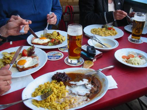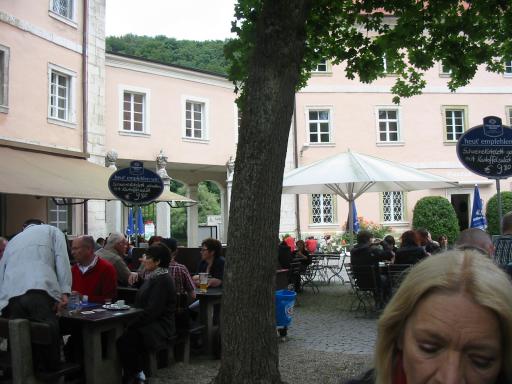 Im Hof war ein Biergarten eingerichtet und trotz der vielen Leute bekamen wir sehr schnell unser Essen. Und gut geschmeckt hat es außerdem noch. |