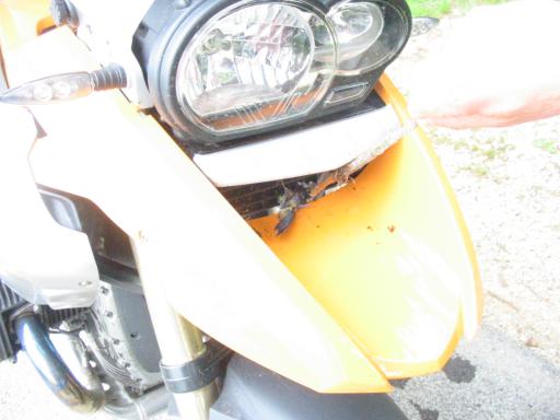 Hier erwartete uns eine etwas unschöne Überraschung. Wie sich herausstellte, eignet sich so eine GS nicht nur als Spaßmobil auf mehr oder weniger festem Untergrund. Für manch einen kleinen Tiefflieger kann sie auch eine brutale Endstation sein. |