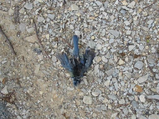 Und angesichts der Tatsache, dass der Piepmatz erst nach seinem Tode die Welt zu sehen bekam (schließlich klebte er schon in Brandenburg - und vermutlich schon seit der letzten Tour *ihgitt* - an meiner Maschine), könnte man die Karre jetzt wohl auch einen Leichen-Touren-Wagen nennen. ;-)