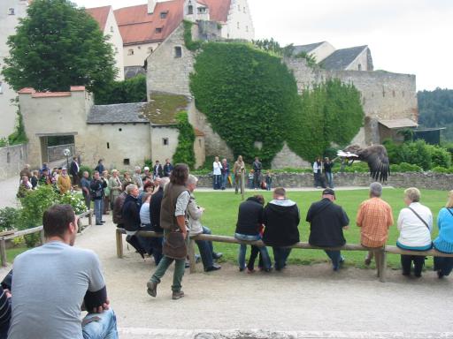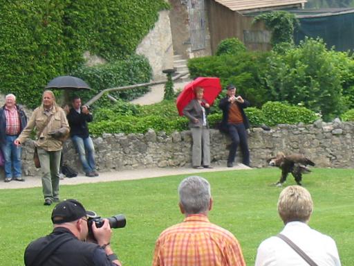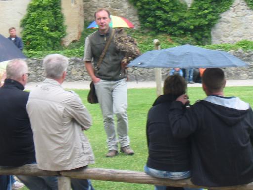 Unser nächstes Ziel war jetzt die Rosenburg. Die dortige Falknerei ist sehr professionell eingerichtet und bietet eine tolle Show an. Das idyllische Gelände tat sein übriges auch wenn der stets tröpfelnde Regen uns hätte gestohlen bleiben können. |