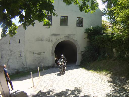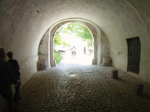 Die Zufahrt erfolgte schon richtig spannend durch das Tor und den Tunnel durch die dicken Mauern der Wehranlage. |