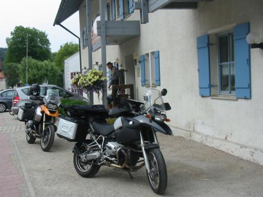 Dann folgte die Schlussetappe zur Unterkunft. Dummerweise drehten wir noch eine nicht gewollte Ehrenrunde über die A9, bevor wir uns ermattet vom heutigen Tage auf der Terrasse unserer Pension niederließen. |