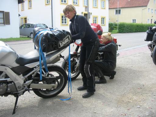 Dann wurde es aber Zeit für den Ausritt. Wir holten unsere Maschinen aus dem Schuppen, der ihnen einen trockenen Platz bot |