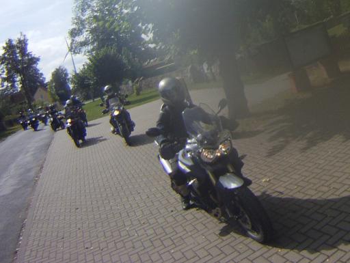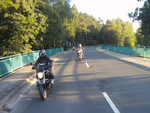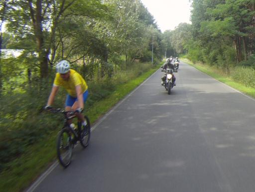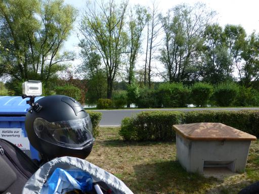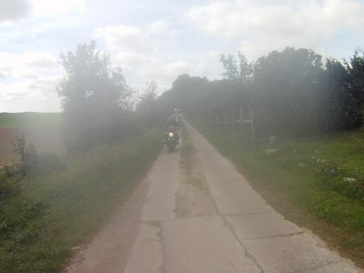 Um den Umweg nicht allzu groß werden zu lassen, nahmen wir eine Abkürzung über eine ziemlich abenteuerlichen Waldweg. Zur Sicherheit fragte ich vorher noch einen älteren Herrn aus dem Dorf Möglin, der versicherte, dass der Weg nicht sehr sandig wäre und nur Schotterbelag hätte. Er sollte Recht behalten. Allerdings war der Schotterweg doch ziemlich holprig. Und leider gibt es davon keine Aufnahmen, weil inzwischen der Akku der Helmkamera leer war.