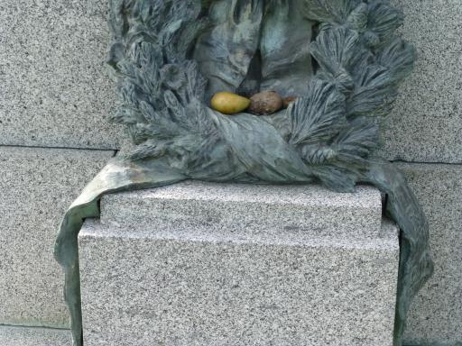 Und die hier regelmäßig hingelegten Kartoffeln erinnern an seinen Verdienst um die Umgestaltung der Landwirtschaft, die zum Ziel hatte, das bis dahin wichtigste Grundnahrungsmittel Gerste durch die gehaltvollere und gegen Umwelteinflüsse weniger empfindliche Knolle abzulösen. |