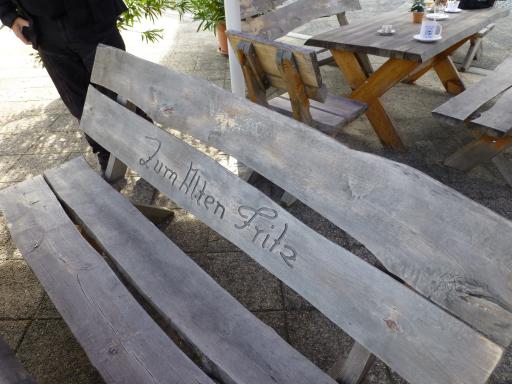 Das Essen für uns fünfzehn war recht schnell serviert worden und so konnten wir bald die Coparate-Identity-Sitzbänke wieder räumen |