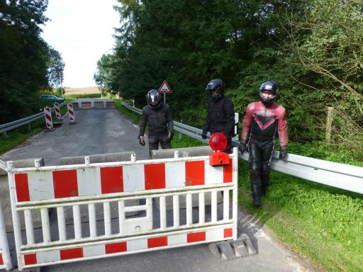 Eine weitere Baustelle erwies sich als unüberwindlich. Kurz vor Schulzendorf war offenbar die Strasse unterspült worden und zum Teil abgestürzt. |
