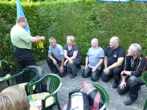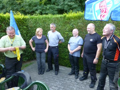 Nach Kaffee und Kuchen galt es wieder einen offiziellen Ritus abzuhalten: Gisi, Jörg, Fred, Andreas und Hans-Peter (v.l.n.r.) erhielten heute ihr "Goldenes Band". |