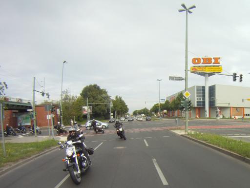 Also so richtig wetterfest war das Wetter heute ja nicht. Glücklicherweise traf uns das obere Nass erst am Schluß der Tour, aber der Reihe nach. Erst einmal trafen sich Daniela, Sybille, Gerald, Jörg, Mirko, Ralf, Reiner, Ronald, Xavier und meiner Einer morgens am Treffpunkt Süd-Ost, dem Bakersdrive in Adlershof. |
