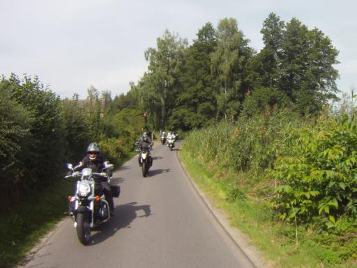 Nachdem der Himmel zuvor leicht bedeckt war, trat Klärchen jetzt ihren Dienst an und ließ uns in den Klamotten mächtig schwitzten. Also trieb uns der Wunsch nach ein bißchen Fahrtwind bald weiter. |