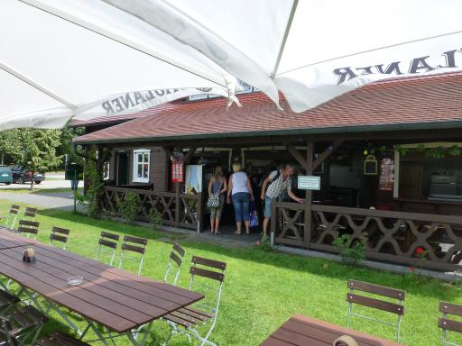 Mit dem Imbiss hatten wir schon einmal schlechte Erfahrungen gemacht. Für die Qualität des Essens sind die Preise eigentlich zu hoch und wenn sich eine ganze Gruppe anstellt, dann sind die Leute sehr schnell überfordert, so dass mancher ziemlich lange warten musste. Aber bald hatte jeder seins. |