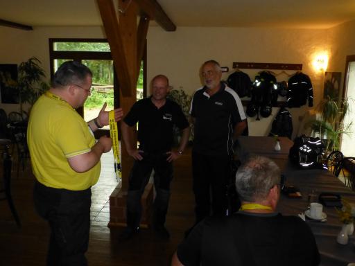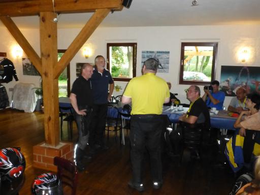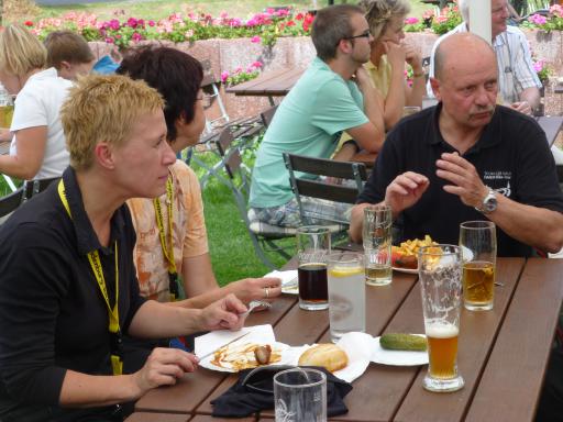 Nachdem uns der Wettergott bisher gute Dienste geleistet hatte, waren die letzten Kilometer reichlich feucht und so mussten wir im Innern Platz nehmen zu AW+/-S, Kaffee und Eis. |
