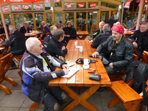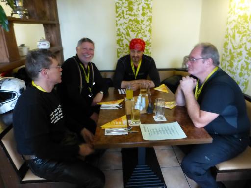 Also weiter ging die Fahrt nach Friedersdorf, Wolzig und dann wie üblich eine Umleitung die uns weit um Storkow führte. Hinter Storkow ging es dann weiter nach Bad Saarow, Neu Golm, Fürstenwalde nach Berkenbrück. Hier in Berkenbrück heißt es Essenfassen im Bürgerhaus. Leider war das Lokal bei unserem Eintreffen gut besetzt, so dass wir etwas warten mussten. |