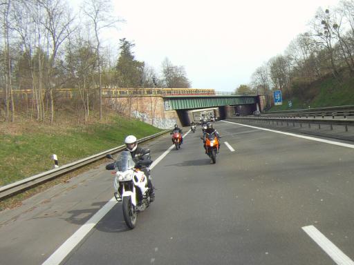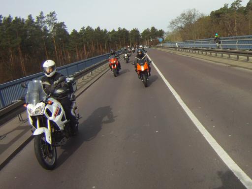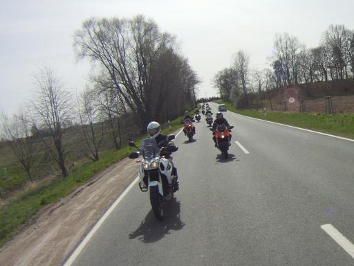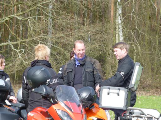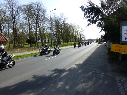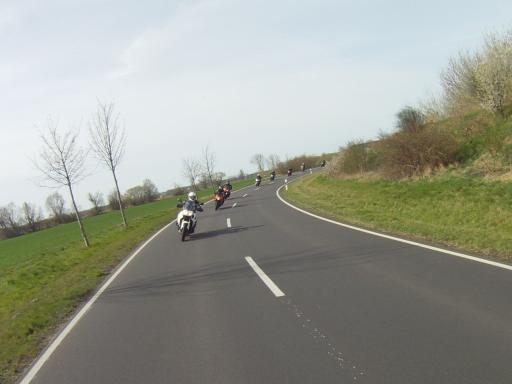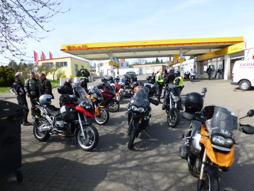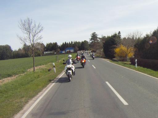 Zum verspäteten Saison-Auftakt wurden wir heute mit einem herrlichen Frühlings-Wetter beschenkt. Nicht zu warm konnten wir doch über sonnige Straßen durch langsam aufblühende Landschaften surfen. Klar, dass das auch den letzten Winterschläfer auf den Asphalt trieb. So waren wir mit 28 Leuten auf 27 Maschinen auch eine ordentliche Meute.