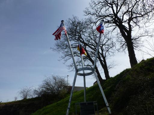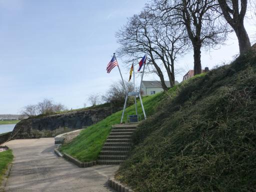 Das Denkmal hier war heute nicht beflaggt. So nahmen wir mit den Gedenktafeln in drei Sprachen Vorlieb.