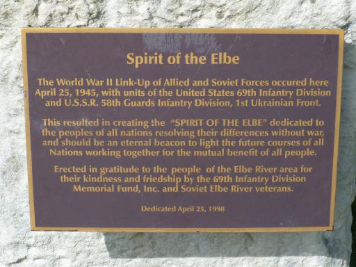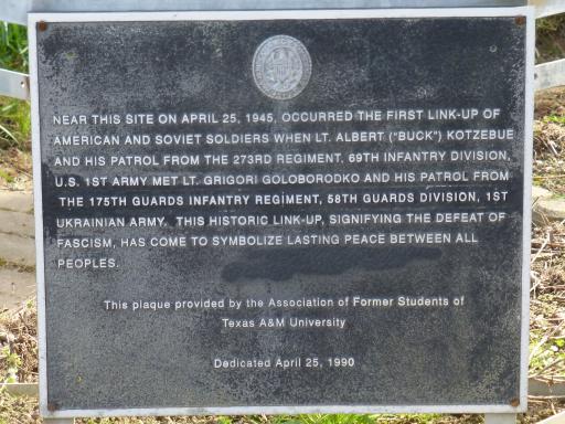 An diesem Ort trafen sich am 25. April 1945 amerikanische und sowjetische Verbände und läuteten so das Kriegsende vor 70 Jahren ein. Dies war der reale Punkt, wo eine Vorhut des 273. Infanterieregimentes der Amerikaner auf das 175. Garde-Schützen-Regiment der Roten Armee stieß. Dass man den offiziellen Treffpunkt lieber ein paar Kilometer weiter flussabwärts nach Torgau verlegen wollte, soll daran gelegen haben, dass hier "zu viele zivile Opfer herumlagen". Das Schloss in Torgau schien eine passendere Kulisse zu sein.