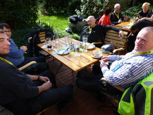Nach etwa 70 Minuten trafen wir hinter Prettin, Jessen/Elster, Malterhausen, Kemnitz, Zülichendorf und Nettgendorf in Dobbrikow ein, wo der kulinarische Part mit AW+/-S, Kaffee, Eisbechern und anderem Süßkram weiterging.