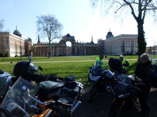Kurz darauf legten wir gegenüber des Neuen Palais unsere erste Pause die Einreihpause ein. Auch wenn wir gerade erst gestartet waren, sollte das Motiv auf Zelluloid (bzw. Silizium) gebannt werden.