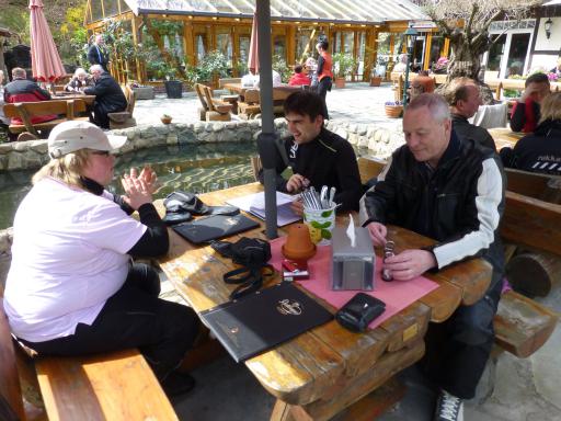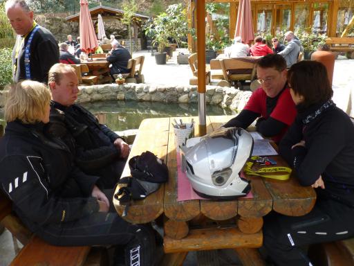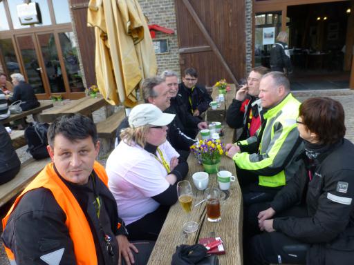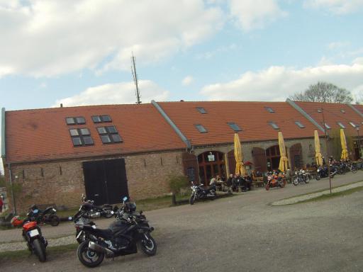wo wir in der dortigen Bikerscheune auf einen Scheidebecher einkehrten.