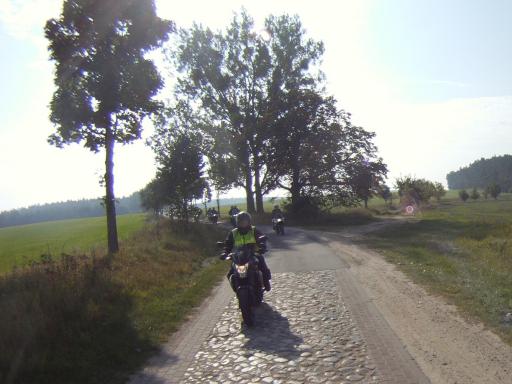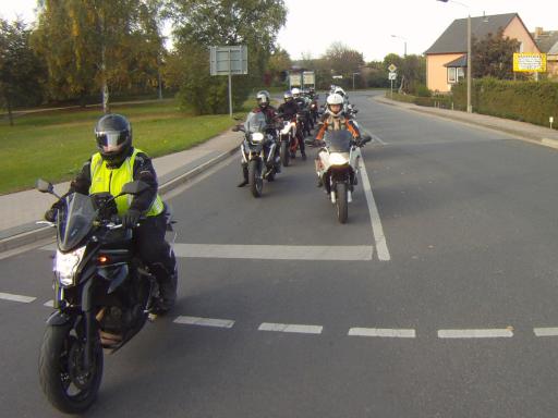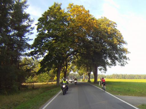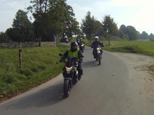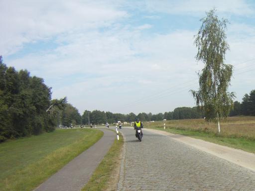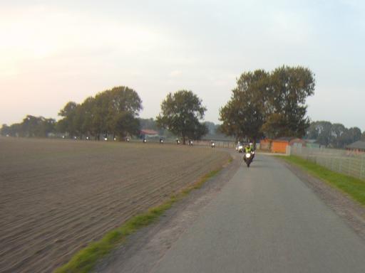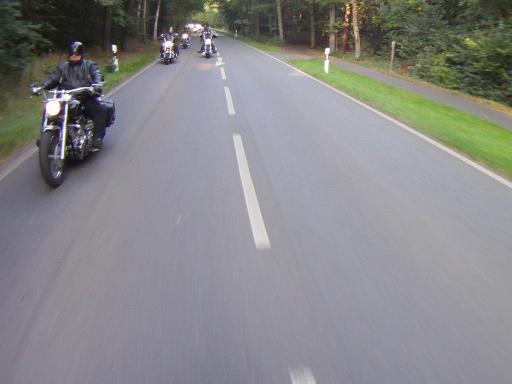 Dabei gab es dann ein "Hindernis" der besonderen Art. Eine MC-Gruppe mit etwa 12 Maschinen bollerte in der ihr eigenen Art (sehr dicht nebeneinander) und mit ziemlich langweiligem Tempo vor uns hin. Anfängliche Versuche, die Gruppe zu überholen, scheiterten.
