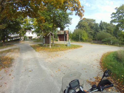 In Pieverstorf kam es dann zum Rütli-Schwur. Es stand zur Frage, ob wir das letzte Stück zum Ziel auf der geplanten – asphaltierten – Strecke zurück legen wollten oder neun Kilometer sparen wollten, indem wir eine Schotter/Sand-Piste unter die Pneus nehmen würden. Die Gruppe teilte sich auf. Hier ging es links zum Schotter und rechts zum Asphalt.