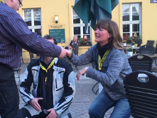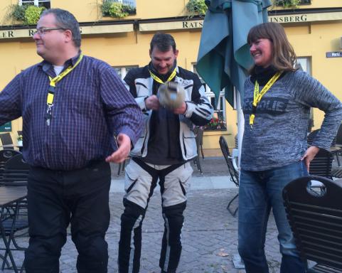 Für Eva und René war es heute soweit: für 1000 harterprobte Kilometer mit uns wurden sie "geadelt" und zu Trägern des "Güldnen Bandes" erhoben.