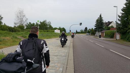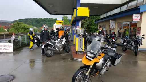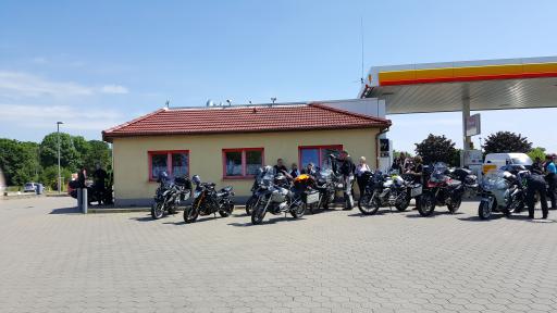 bevor wir uns auf die Reise machten. Um erst einmal ein paar Kilometer abzureißen spurteten wir über die A9 bis kurz hinter Dessau. Allerdings machten ein paar Baustellen das "Spurten" etwas schwierig. Von der Autobahn herunter sammelten wir uns zunächst an einer Tankstelle.