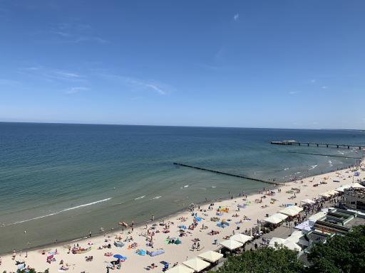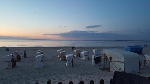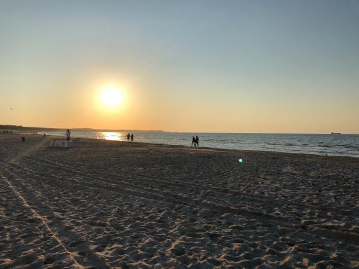 Für uns gab es heute das Abendessen im Hotel. Aber das wunderschöne Wetter nötigte uns, in kleinen Gruppen über die Flaniermeile und den Strand zu spazieren. So nutzten wir die Zeit vor- und nach dem Abendessen.