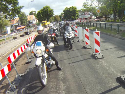 Die letzten Schlieren des nächtlichen Gusses nahmen wir mit und unsere Hoffnung auf einen ansonsten trockenen und sonnigen Tag sollte auch erfüllt werden. Aber erst einmal hieß es, aus Swinemünde hinaus zu finden. Eine Unmenge von Baustellen und zu allem Übel viele Einbahnstraßenregelungen machten es schwer. (Die unnötigen und umso mehr lautstarken Kommentare der Mitfahrenden überhört man dabei sowieso.)