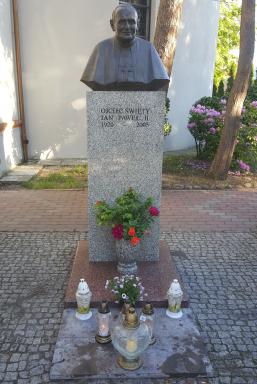 Ein anderes Gedenken galt an dem Ort dem in der Kirchenlandschaft Polens stets gegenwärtigen Johannes Paul II. Hier eine sehr schöne Büste von ihm.