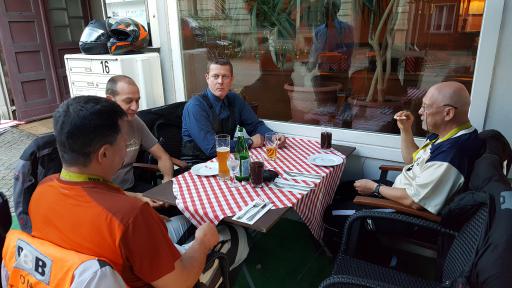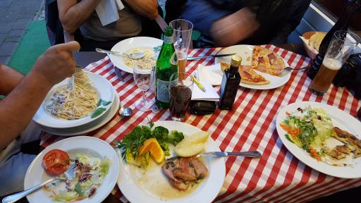 "Einzureihen" gab es auch nichts weiter und so konnten wir unsere Fahrt zum Abendessen fortsetzen. Bis dahin war es auch nicht mehr weit. Wie geplant kehrten wir in eine kleine Pizzeria am Straßenrand in Neustadt/Dosse ein. Diesmal zwar ohne Vorbestellung, aber bei einer so kleinen Gruppe ging es mit der Bestellung dennoch zügig und bald war der Tisch reichlich gedeckt.
