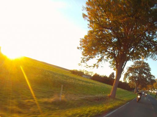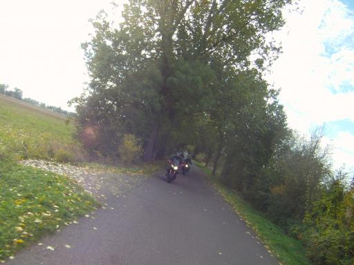 Tja … und jetzt wird es Zeit, ein paar schmutzige Details der heutigen Tour einzugestehen: denn einerseits hatte ich morgens zu Haus in der Hektik des Aufbruchs mein eigenes Handy vergessen. So mussten die Mitfahrer heute sämtliche Fotos liefern, was mit unserem On-Tour-Gadget auch gut klappte. Aber leider habe ich nach meinem Umzug auch noch nicht alle Utensilien wiedergefunden. Und so herrschte heute ein Mangel an Ersatz-Akkus für die Helmkamera. Deshalb gibt es jetzt bildertechnisch einen Sprung: